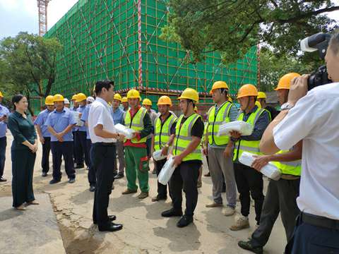 8月21日上午十一点,接近中午烈日炎炎,湘江集团党委书记、董事长张利刚一行来到乐鱼·网站官网登录入口-乐鱼online(中国)承建的长沙科技创意园项目,现场看望慰问高温天气下依然坚守战斗在岗位上的广大建设者,为大家送来了冰箱、电风扇、凉茶、藿香正气水、夏桑菊、西瓜等防暑降温用品。
